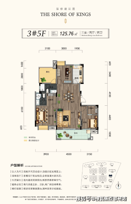 建面约125㎡(三室两厅两卫)