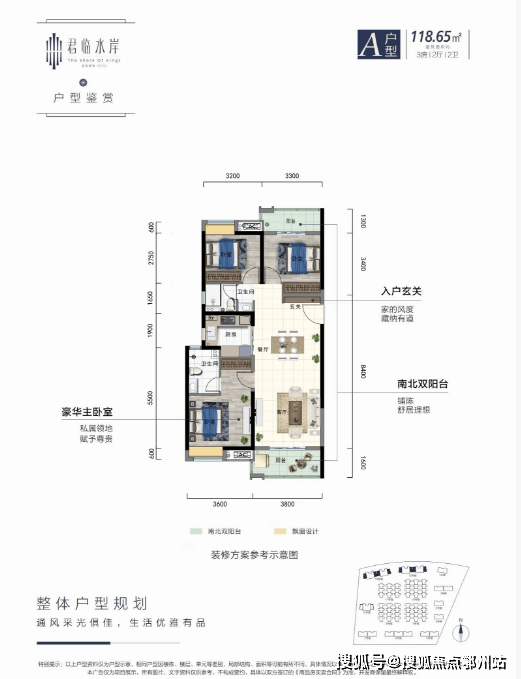 建面约119㎡(三室两厅两卫)