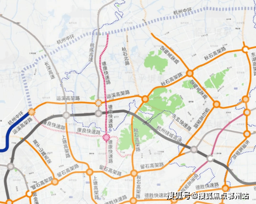 2、临近未来南北交通大动脉: 去年9月公布的杭州市综合交通专项规划(2021-2035)批复中,市区城市道路系统布局规划图显示,规划的塘康路为城市一级主干道。未来将会南接留石高架路,构建杭州城北新的南北向快速交通大动脉。塘康路位于崇贤板块的正中间,与项目直线距离1.3KM。