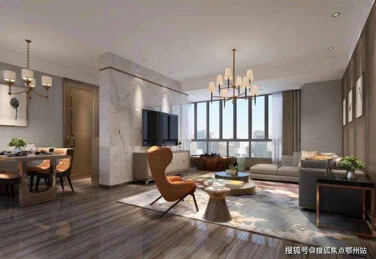 A1户型:180度全景采光,超大尺度一体客餐厅,奢阔主卧。