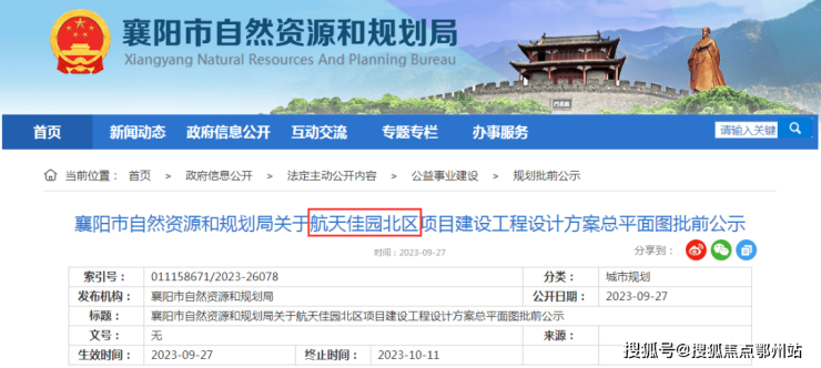 项目位于 樊城区鏖战岗路以西、航宇幸福佳园小区以北 。