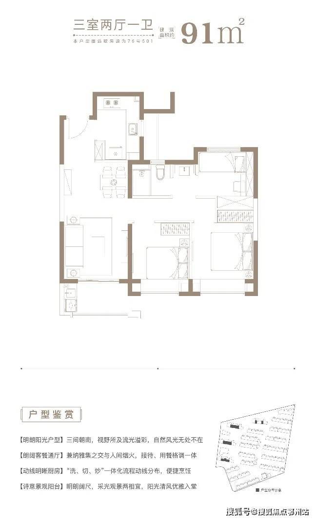 高层户型(84 - 101㎡三至四房),三开间朝南、双卫设计,全明通透,部分户型还能享受高尔夫视野。