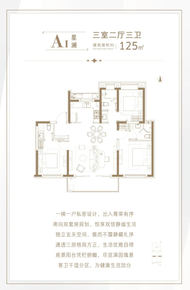 125㎡户型与第一排住宅间最短楼间距也有63米!第一排则直面星空之镜城市公园!