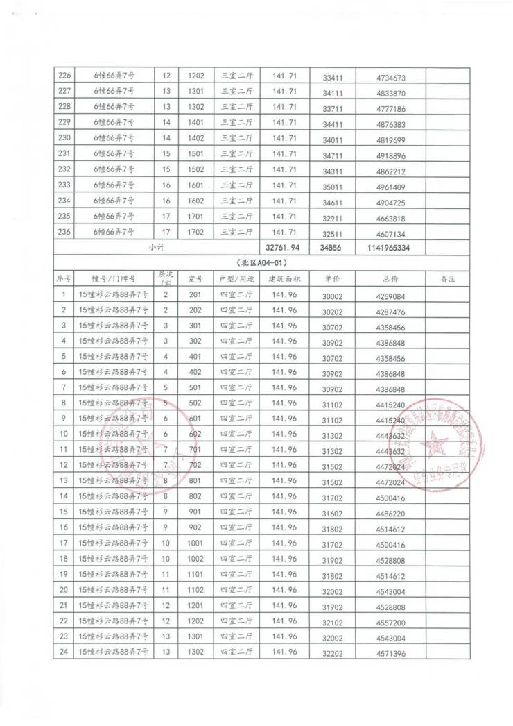 一房一价表