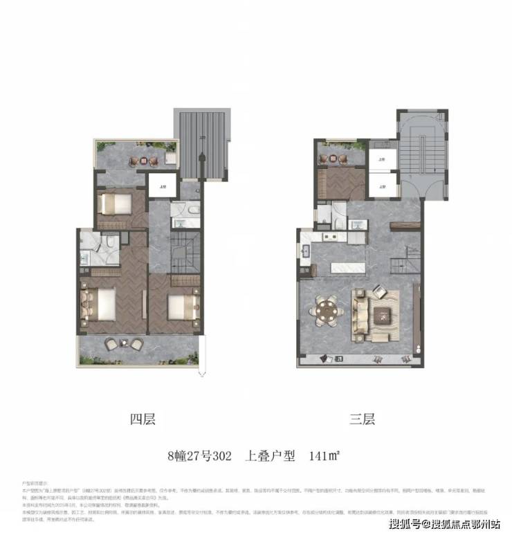 项目叠墅包含建面约141㎡上叠和建面约150㎡下叠.