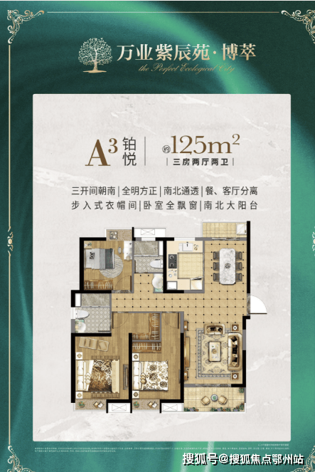 A1户型 125㎡三房两厅两卫 东边套