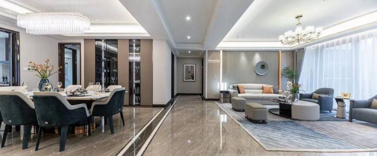 餐客厅一体化通厅,连接南向独一无二的大露台,配合大面积落地玻璃门,推门远眺就能一览万亩望江山风光以及园区坡地景观,俯仰之间,晕染开自在惬意的漫漫山水生活。