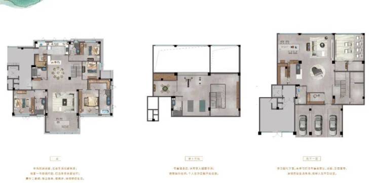 项目分为三层,建筑整体向外界面开窗,因循地势,首创全明下跃户型,即便是地下空间亦能拥揽山景,融入自然,向光而居。艺术的感受是传递真实与不可定义性,只有被放到更包容的空间中,才能获得自身的意义。面向外景的空间被完全打开,以开放的格局拥抱四时风景。