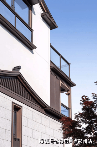 建筑设计出自gad手笔,立面以浅灰石材、咖啡色铝板、涂料为主 ,主打一个“水墨淡彩”,悬山顶出檐深远、举折平缓。并以简洁金属线条勾勒,将悬鱼、雀替、花窗等元素进行抽象化表达,尽显中式隽永之美。尤其是立面用的 铝构工艺 ,工序繁复,线条立挺,专门邀请古建筑施工单位打造。