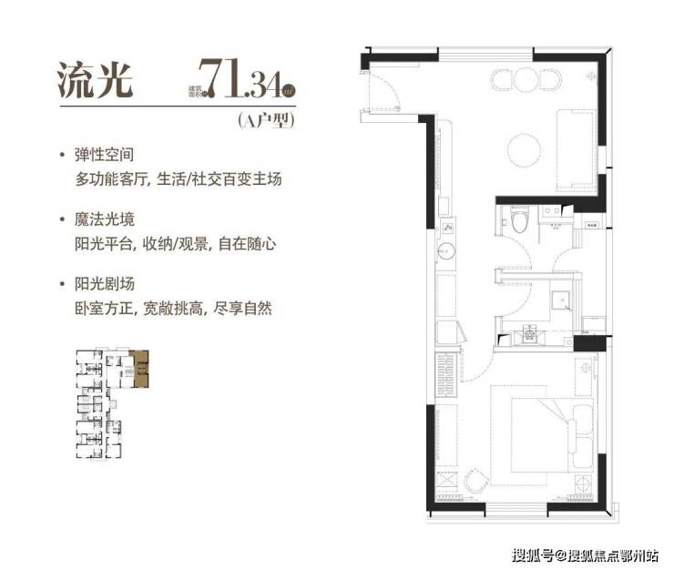 A|流光|建面约71.34m²|一室两厅一厨一卫