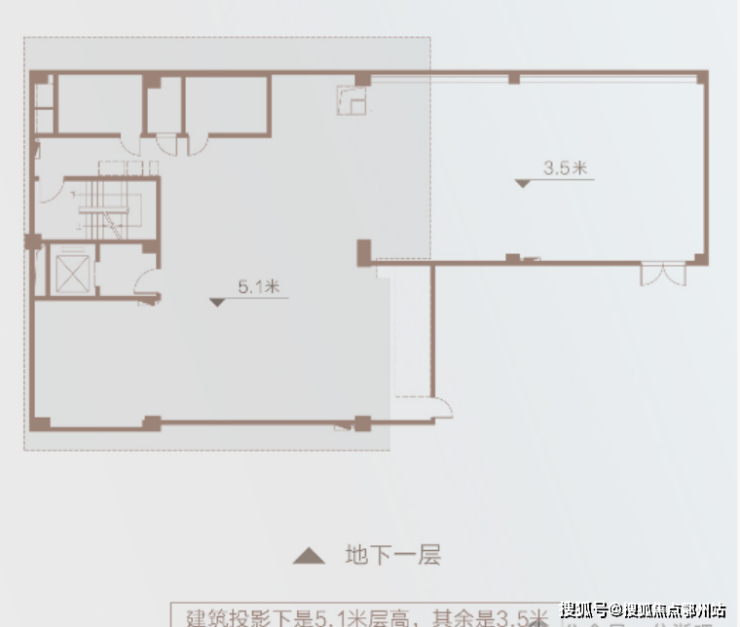 地下社交: 层高约5.1m、局部约3.5m,可作企业康养乐活空间
