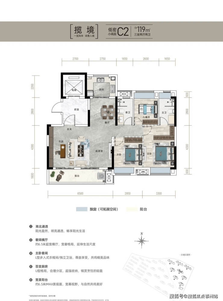 以领先市场的创新约89㎡藏品洋房、公摊低至17%,赠送面积得房率约92%;约98㎡—119㎡南北通透、电梯入户小高层产品,小高层打造区域内罕见2T2梯户比,专梯入户,保证私密度与尊崇感。采用南北通透户型设计,充分保证采光,以超高得房率的超前智造空间,领跑全区,敬献全城菁英。