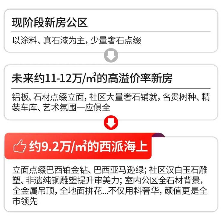 这句话没毛病。但在小胖君看来: 同级别的高溢价率新房再如何更新和迭代,也不会比西派海上更出色。