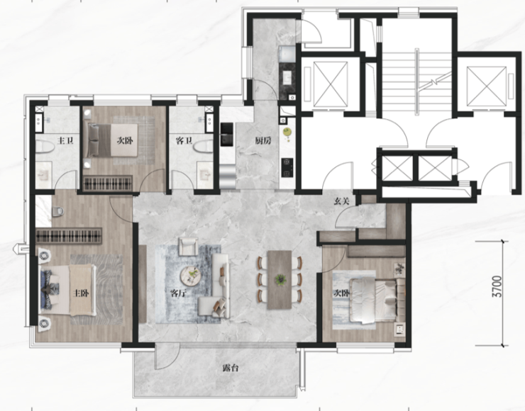 洋房产品利用南向面宽,通过LDKB一体化巨厅、豪华主卧套、阳台+露台、厨房家政联动等亮点,和高赠送尺度结合,形成舒适居家空间。点式独栋200平洋房强化墅感,层层体量不同,一梯一户,入户见园,景观渗透270°,落地门窗观景巨幕,营造酒店化舒适体验。