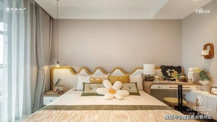 全屋约14.6米大面宽的尺度,让三个卧室都能够直面南向采光,实现阳光平权。主卧是豪华套房,除了飘窗、独卫外,由于空间够大,不论是衣帽间的梳妆打扮,临时办公等,也都能在主卧空间内实现。