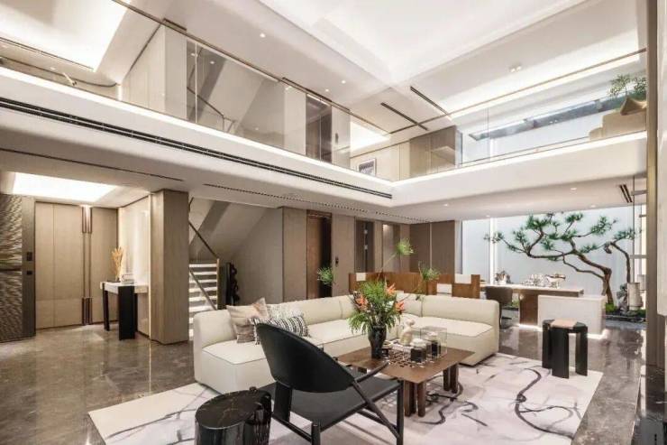 首层层高3.5m;地下室预留自然采光天井,5.4m挑空会客厅,可定制夹层拓展使用空间;配置顶层大露台与南北双向大面积阳台,从空间尺度到功能分区,南区别墅产品达到了赠送率与产品力的突破。