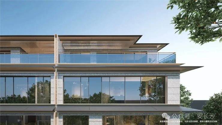 别墅产品,大面积干挂石材与玻璃铝板外立面,融入“重檐”元素,展现东方气质,通过“线框造型”强化别墅的横向线条,彰显大气磅礴之势,革新长沙别墅的高阶审美。