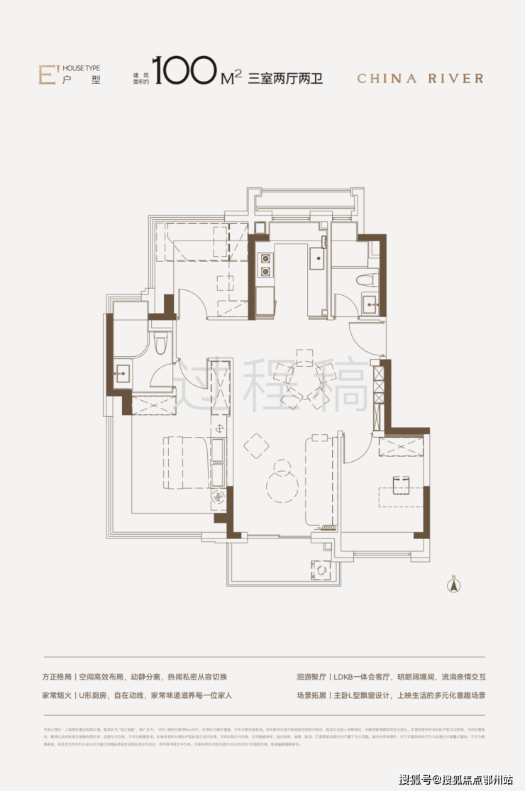 建面约100㎡3房,采用同级罕见四叶草布局 ,三个房间相对独立,互不打扰;南北通透;重要的是几乎无浪费面积,使用率高。
