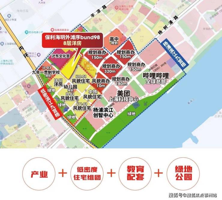 不仅雄踞杨浦滨江九宫格,咫尺科创大厂,从小地段看 bund98又镶嵌在滨江难得的一个低密九宫格内