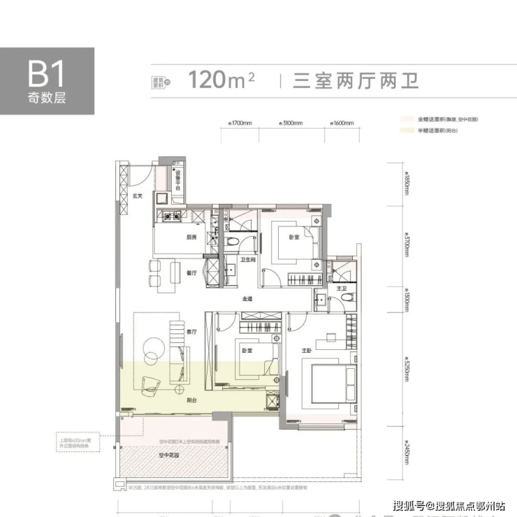 •得房率高达127-132%,约16-20㎡空中花园全赠送!