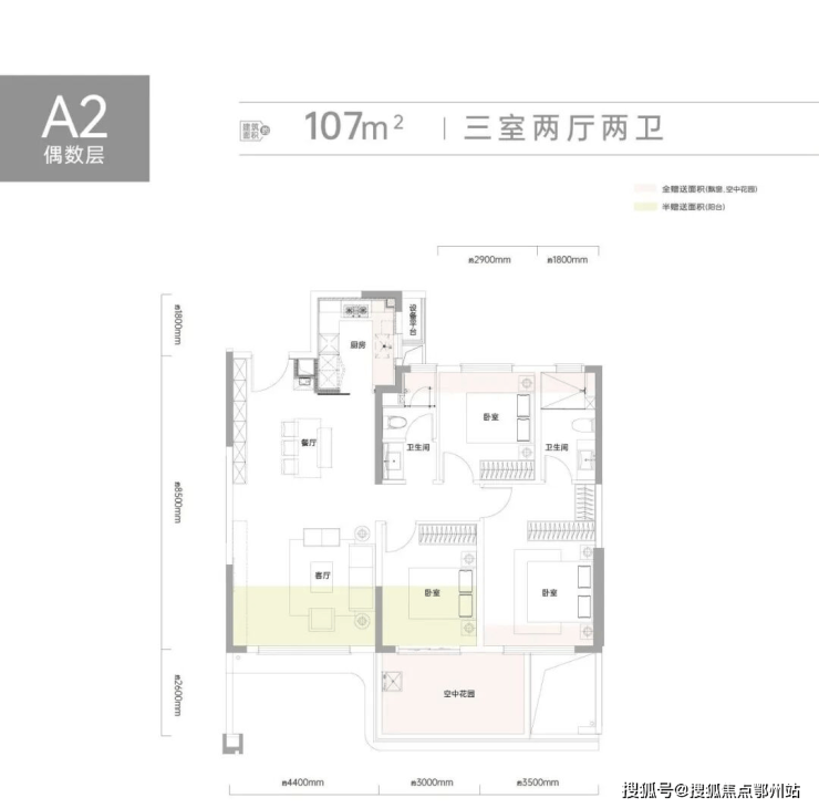 产品面积:约107-140㎡三至四房