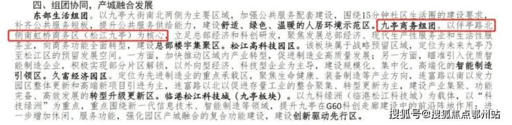 另一方面是内部, 九亭教育资源在补强,并依托G60科创走廊先导区优势,将打造“四大产业”新高地。