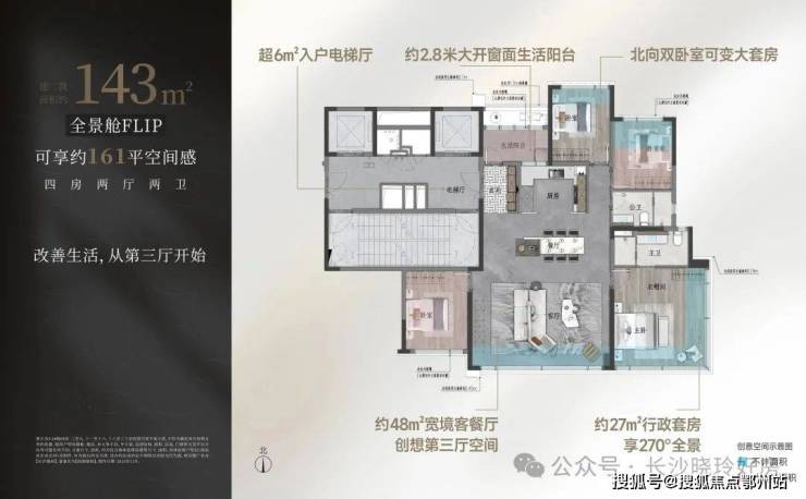【建面约143㎡南厅户型图】建面约143㎡可享161㎡空间感