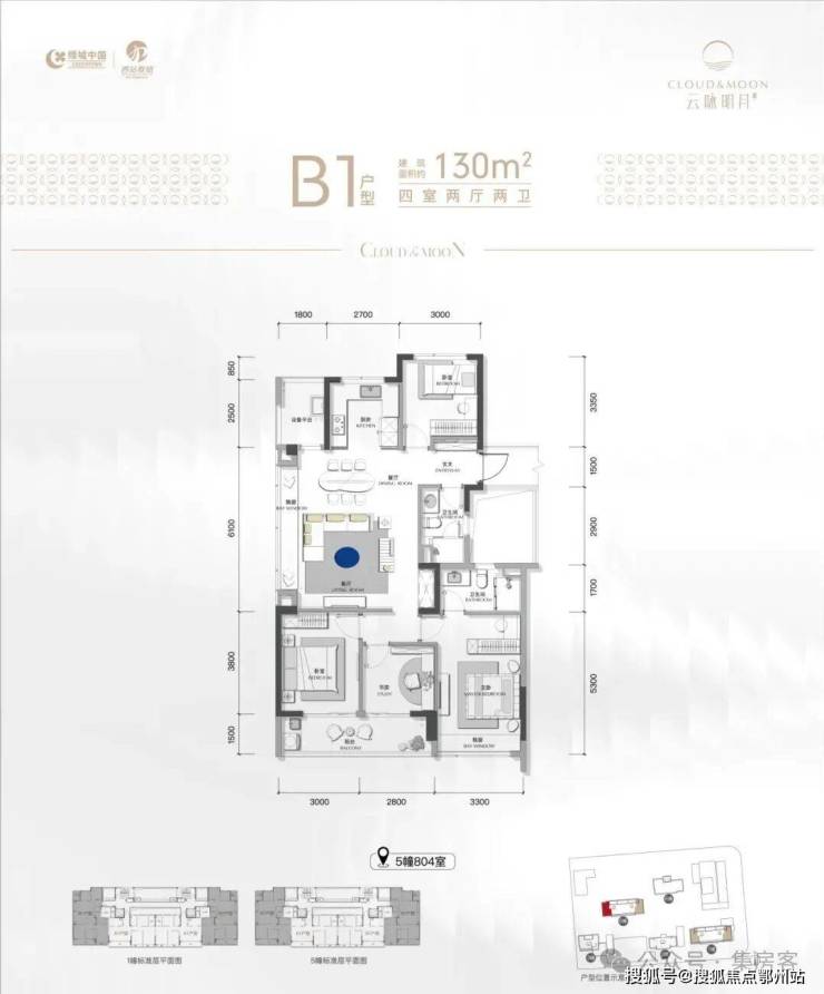 建面约130㎡四室两厅两卫 边套:大面宽的客厅带飘窗,客厅一侧还做了设备间(带窗),采光、通风比市面上同户型更佳。