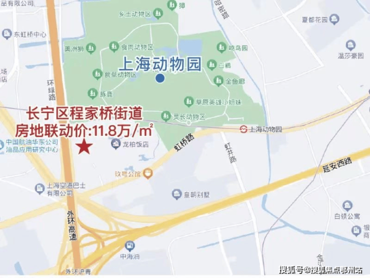 项目位于中外环间,距离地铁10号线动物园站出入口约1公里,地处虹桥路历史风貌区,紧邻上海动物园、市文物保护建筑沙逊别墅,周边以住宅区域为主。
