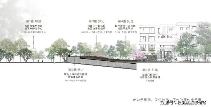 汤臣君品Ⅱ期坐拥内外5重园林体系,打开“家的边界”。社区内部景观采用“一轴·五境”设计,一条景观轴线,营造归家仪式感,五大景观空间,涵盖户外休息区、萌宠乐园以及“森林奇境”儿童活动区,巧用丰富地形,创造出兼具趣味感和互动感的自然游戏乐园。