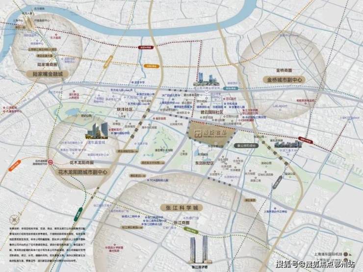 汤臣君品项目占地约495亩(约33万m²),总建面约49.6万㎡(其中地上总建面约23万㎡), 容积率为 0.7 ;与浦开集团打造的约634亩东郊体育公园共同组成整个地块,地块四至:北至锦绣东路,南至张家浜河,西至云山路,东至金科路。一条蜿蜒的张家浜河天然河道穿社区而过,将整个地块分为东、西两部分,总体分6期开发建设。整块地外围和中心均被东郊体育公园所环抱,可谓“生活在四季的中央”。