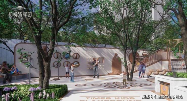 在保障下叠业主的庭院之余,还充分考虑了全体业主的社交和全家共享的户外空间,所以,在园区的各个节点融入了童趣、