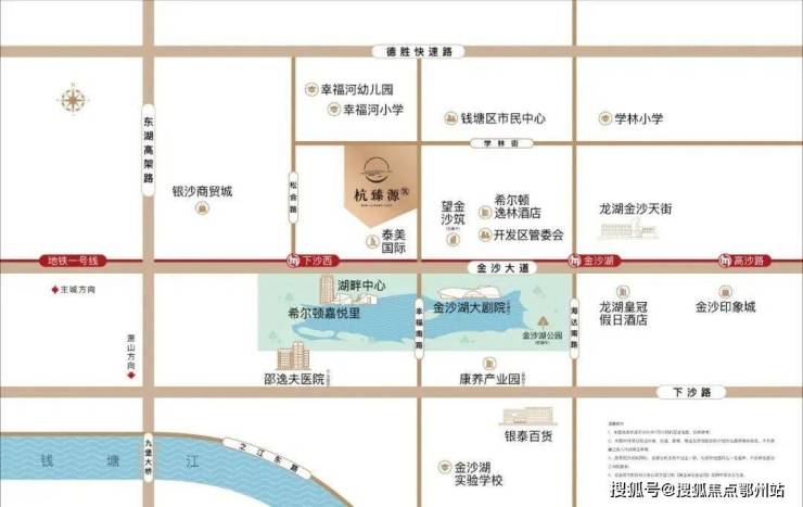 项目位于钱塘区地处金沙湖板块核芯区,一脉承接钱江新城、钱新2.0,承载钱塘区大量企业总部需求的同时,又可坐享核心地段的环湖高光配套赋能,杭州第四座CBD-金沙湖商务区已然成形。