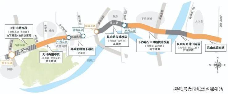 · 快速路网:北接德胜高架(贯穿东西)往南连接钱塘快速路(西起留下,途径西溪、城西、中心城区、艮北新城、往东至大江东),西接东湖快速路到临平,往南连接九堡大桥到萧山片区。