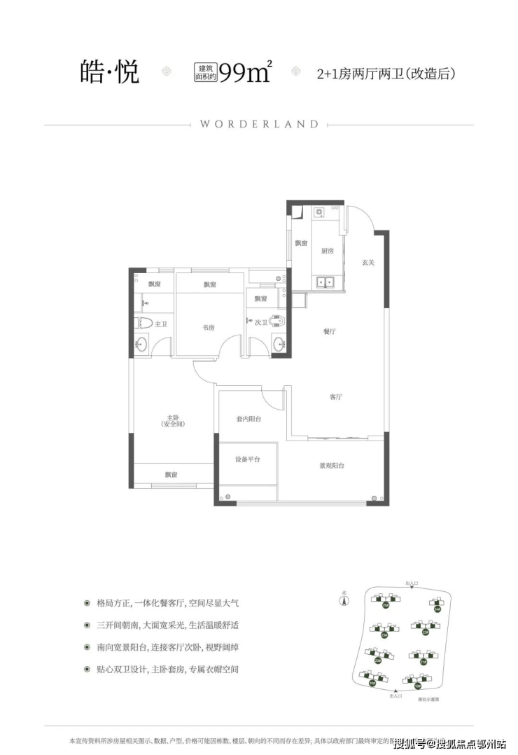首发新规建筑面积约99㎡2+1房、约3.9m客厅开间、三开间朝南、得房率约102%