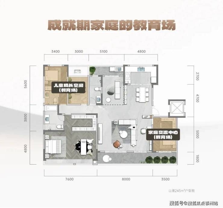 越成功的家庭,越注重孩子教育,更注重全面素质和品格的培养,注重家庭教育和言传身教。山湖245约20㎡孩子卧室套房,独立成长必要的物理空间,予孩子更多尊重和自由,滋养出独立自在的灵魂。卧室之外,专定近17㎡成长空间,为孩子成长的不同阶段提供不同培养场景。