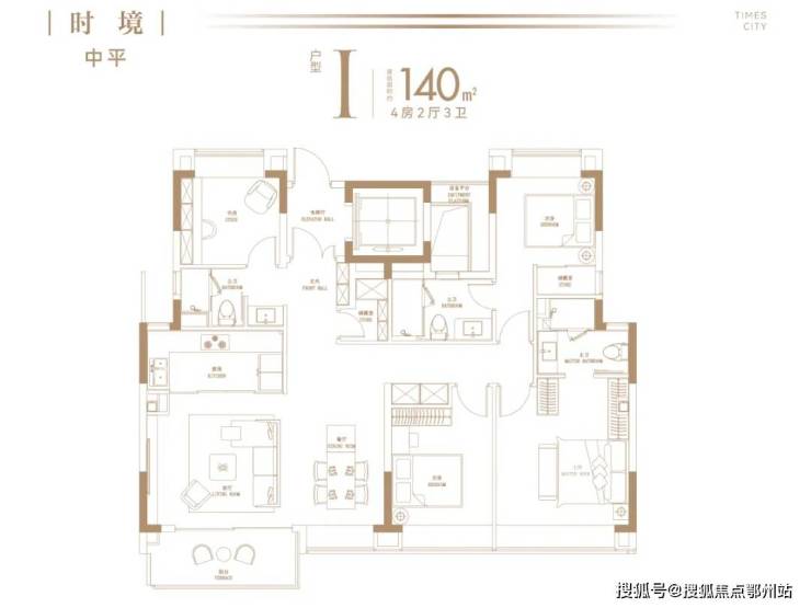 建面约130㎡-170 ㎡叠墅产品南北入户、专属电梯厅、超级横厅、超强收纳