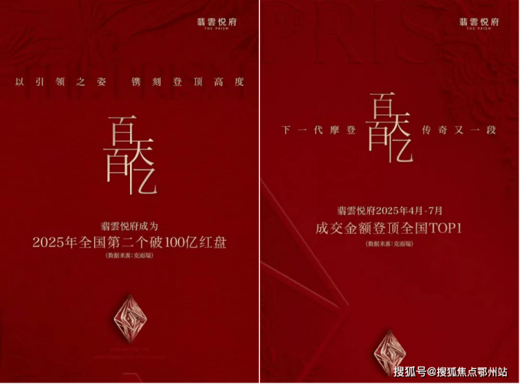 根据克而瑞数据,翡雲悦府已成为2025年全国第二个销量突破100亿的项目。