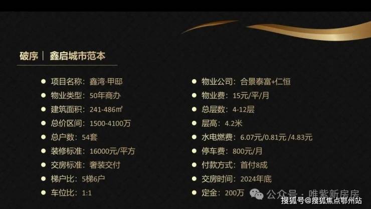 鑫湾甲邸定位为“整栋规划高阶顶奢大平层”,主打241 - 486㎡奢装大平层。