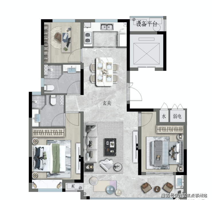 北方多设计了一个静谧次卧,合理动静分区,多一室少一事,随心改造衣帽间、电竞房等,赋予生活更多可能。