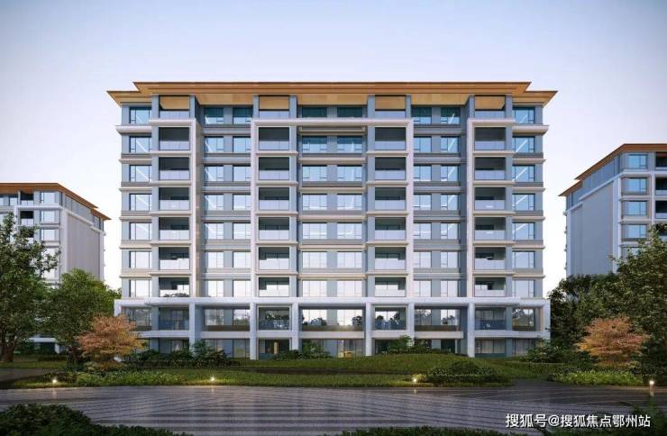 在建筑设计上,通过经典三段式设计,以顶部暗金色铝板挑檐、浅色香槟铝板线条、深色香槟铝板窗套搭配暖灰色真石漆,体现沉稳高端的东方气质。