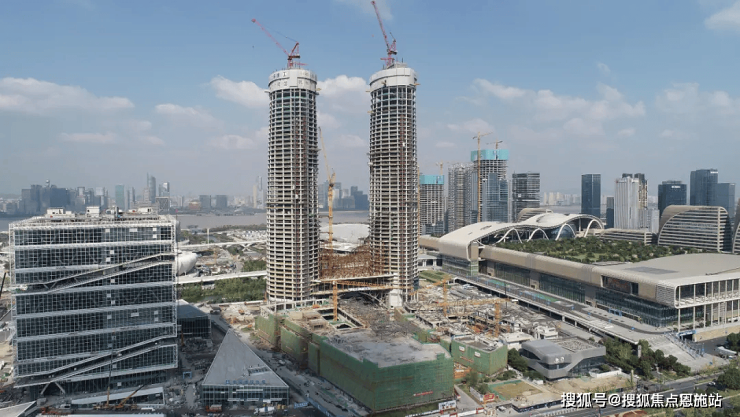 近日,杭州世纪中心(又名“杭州之门”)是由美国SOM建筑事务所倾力打造的浙江省重点工程,正处于东塔冠、西塔冠和悬垂屋面的施工阶段。