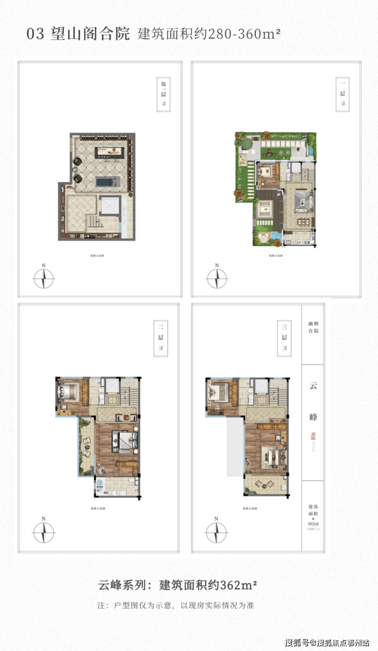 这个小区楼间距挺宽敞的,主推两种户型。排屋有139平和192平两种,合院则更大些,282平和353平的都有。现在卖得最好的是139平的排屋和282平的合院,有些还送地下室呢。