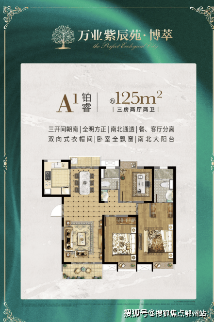 A1户型 125㎡三房两厅两卫 东边套