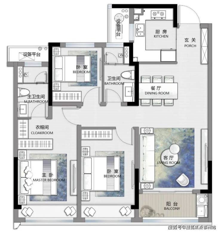 建面约 140 ㎡(东边套)丨四室两厅两卫
