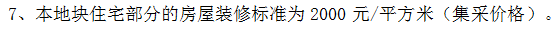 根据土地转让合同要求显示,项目住宅装修比例不低于50%, 装修标准2000元/m²(集采价)。