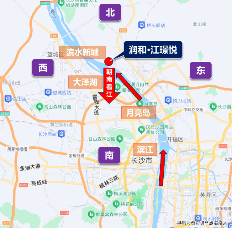 湘江在整个长沙境内共流淌了约70公里,唯独在月亮岛之后向西拐了个小弯,在香炉洲北侧形成了一个特别的湾区,全长沙唯一可以朝南瞰江的土地。