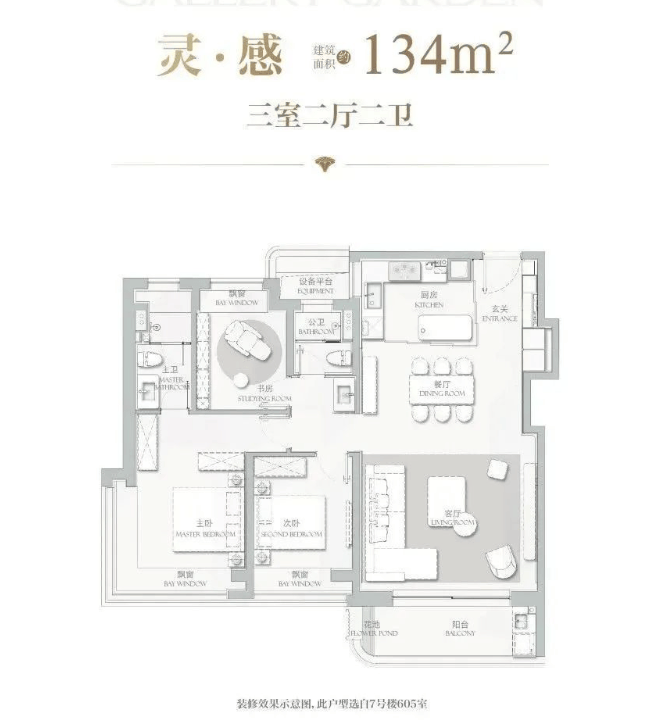 134㎡三房:动静分离,客厅面宽超4.7米+270°采光阳台