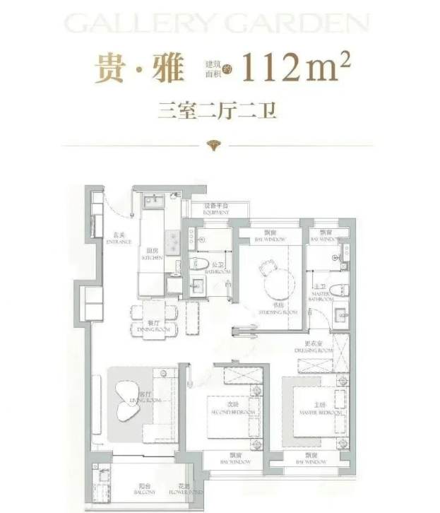 112㎡三房:三卧朝南,“去走廊化”设计,U型厨房