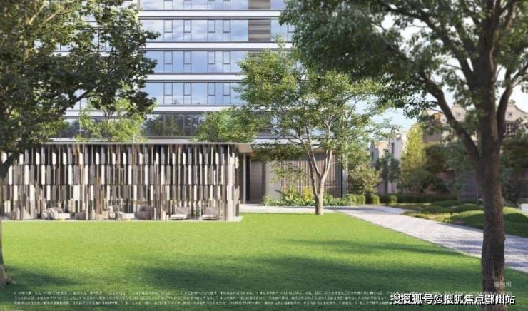 栋距约50米,社区内有宽阔的大草坪,休憩、造景装置颇有现代艺术气息,在极致简约的建筑立面映衬下,增添了灵动丰富的细节。